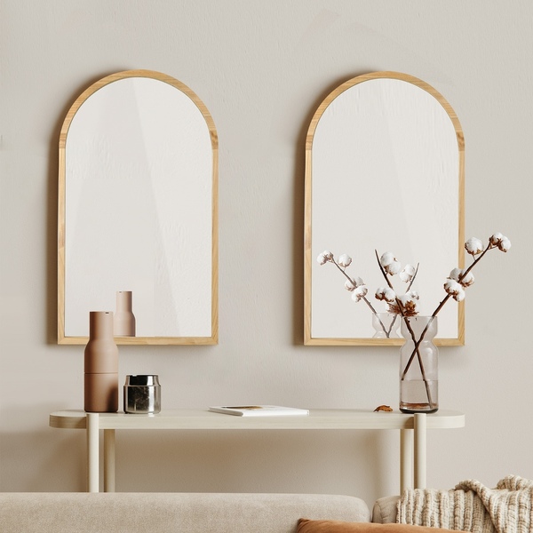 Arched Wall Mirrors 86x50cm Wooden Set of 2