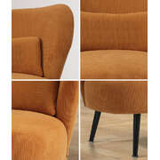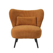 Everyone has their favourite armchair at home. It's the one you go to for relaxation, rest, enjoying entertainment on TV or catching up with your social media. Nothing beats its fit and comfort compared to the rest of the horde. Guess what? This Armchair is about to become the new rave for you. With its generous profile proportions incorporating a wide winged backrest and deep seat, the armchair is enriched with full comfort all round. You are certainly well-supported in every department of your body, including a much-appreciated lumbar pillow for your back. Run your hands over the armchair and you'll be duly impressed with the rich, textured upholstery that comes with velvety corduroy fabric. Construction wise, the wooden frame is durable and sturdy and splay black powder-coated metal legs will ensure that stability is never compromised. Finishing is meticulous to say the least. So fancy a sit down in this beautiful accent piece? Get your order in today and choose your desired colourto match up with your discerning home decor.