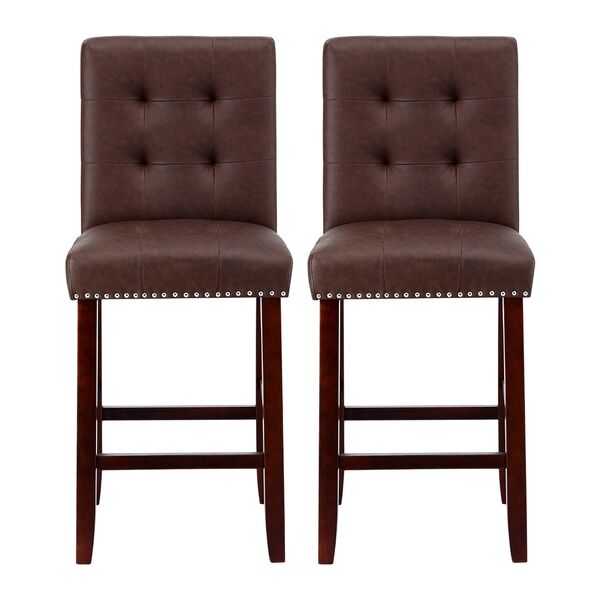 Upgrade your seating with our ergonomic tufted bar stools, perfect for home kitchens, bars, or dining spaces. Each stool boasts a premium PU leather upholstered seat, a decorative silver rivet edge, and a supportive high backrest for unmatched comfort. The thick foam padding ensures a plush seating experience, while the sturdy rubber wood frame delivers reliable strength with a 120kg weight capacity per stool. Anti-slip floor protectors keep your floors scratch-free, and the easy assembly design saves you time. Add elegance and comfort to your space today!