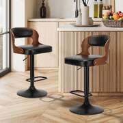 2x Bar Stools PU Leather Swivel Adjustable Kitchen Chairs Wooden Frame