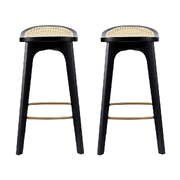 2x Bar Stools Rattan Counter Kitchen Dinning Chair Bamboo Saddle Black