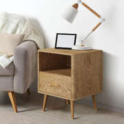 2x Bedside Table 1 Drawer Open Shelf Nightstand Natural