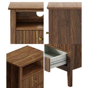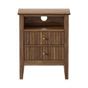 In terms of style, the bedside table has all the vibes of a cottage-inspired piece that stands out from the ordinary. Its eye-catching stripe textured drawer front is matched with attractive woodgrain finish throughout for stylish aesthetics. Loads of character and presence to add a rustic touch to your decor. The bedside table offers ample closed and opened storage whilst the brass handles make for easy opening and closing besides their aesthetic qualities.
