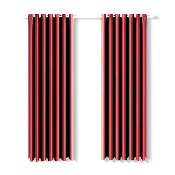 2x Blockout Curtain 3 Layers Eyelet Fabric Room Darkening 140x160cm Burgundy