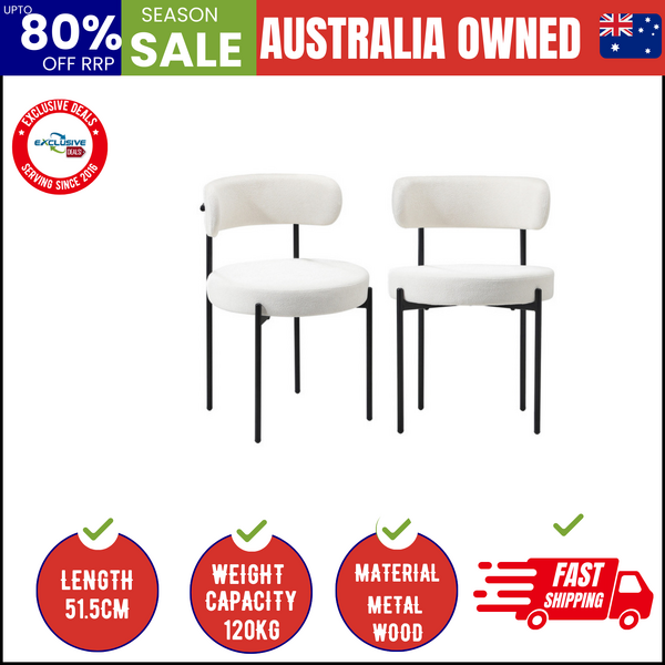 2x Dining Chair Round Boucle Kitchen Lounge Seats Backrest White