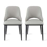 2x dining chairs hollow pu leather kitchen lounge cafe accent chair grey
