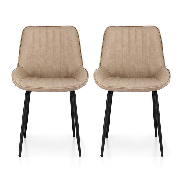 2x dining chairs retro pu leather kitchen lounge cafe accent chair khaki