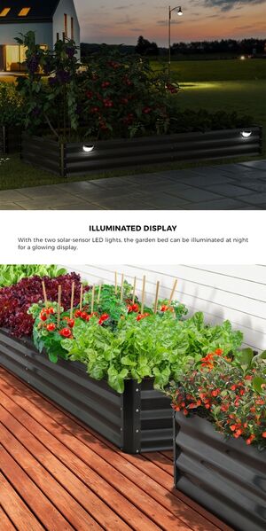 2x Garden Bed 210x90x30cm LED Plant Stand Box Galvanise