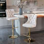 Pair Of Beige Height Adjustable Swivel Bar Stools With Golden Base