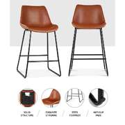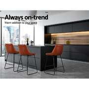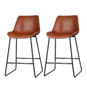 2x Kitchen Counter Bar Stools Brown Leather Metal Barstools Chairs