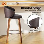 2x Bar Stools Dining Chairs Contoured Leather Wood Stool
