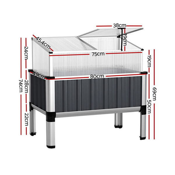 For lush growth, colourful fruits and reliable protection against pests and the elements, you should look no further than a Raised Garden Bed. Whether you're a seasoned gardener or a new green thumb, this garden bed will make tending to your backyard easier than ever. This raised bed is made from a durable aluminium frame with a metal base, topped with a translucent polycarbonate roof for all-round, all-weather protection. The tiltable roof panels can be opened for fresh air supply and precise climate control, or kept closed for protection from UV rays, extreme weather, and pest control. The raised bed offers a host of benefits, including providing a friendly working height to prevent back strain and keeping the plants away from wandering feet. Don't put off growing your own produce – get a Raised Garden Bed and enjoy the fruits of your labour all year round.