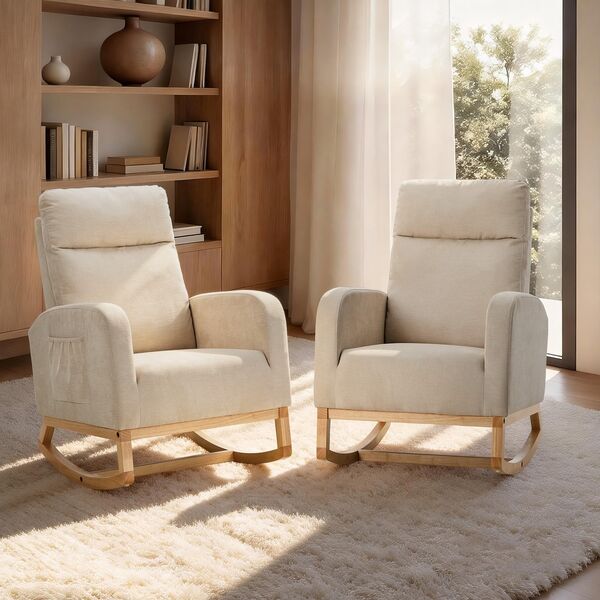 2x Rocking Armchair Linen Fabric Lounge Accent Chair Beige