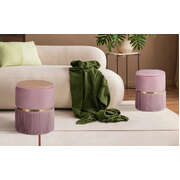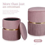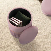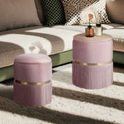 2 Set Side Table Storage Ottoman - Velvet Padded Stool Vanity Footstool REMI - Pink