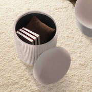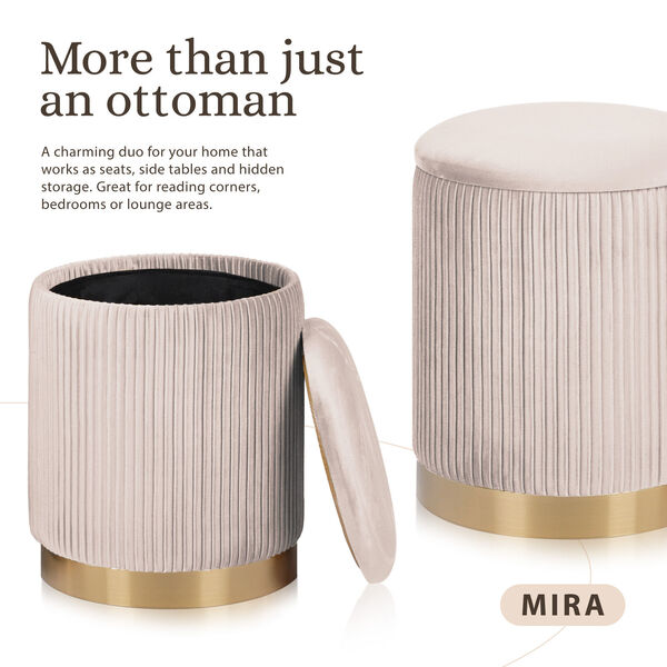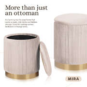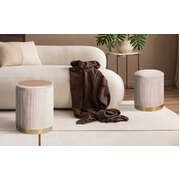 2 Set Side Table Storage Ottoman - Velvet Stool MIRA - Cream