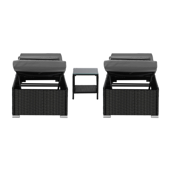 2X Sun Lounge Wicker Lounger Table Patio Furniture Outdoor Setting Day Bed