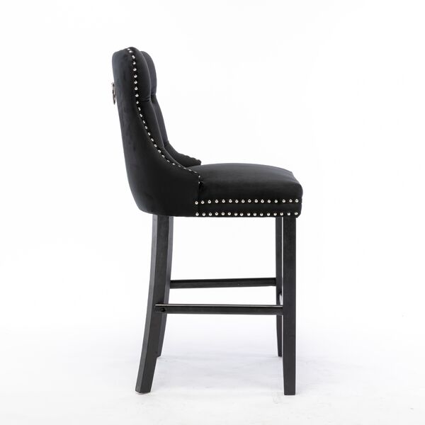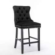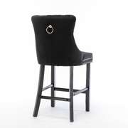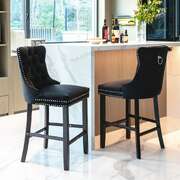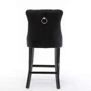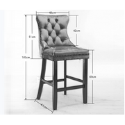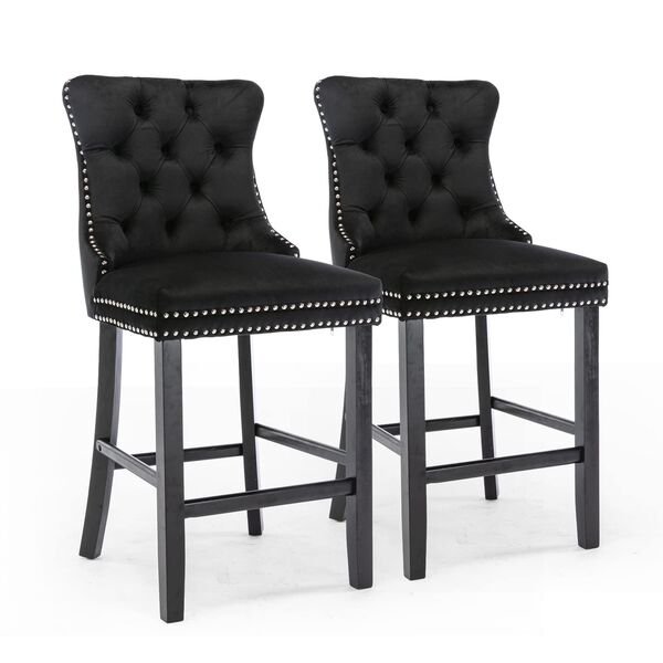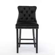 2X Velvet Bar Stools With Studs Trim Wooden Legs Tufted Dining Chairs Kitchen Black