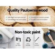 With its charming retro appeal and curved accents, our 3-drawer Storage Cabinet exudes timeless elegance all over. The three deep drawers with vintage metal handles provide ample space for practical storage and are anti-slip.. Crafted from solid Paulownia wood, the cabinet is stable and durable and features round corners for safe use and anti-scratch feet pads to keep floors and surfaces pristine even with robust use. Best of all, the cabinet comes fully assembled and a wall mount is included as an extra safety measure.