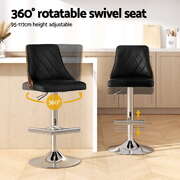2x Wood Bar Stools Black Leather Swivel Adjustable Kitchen Counter Chairs