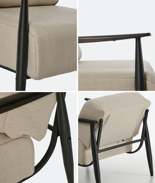 Run your hands over the armchair and you'll be duly impressed with rich and textured faux linen upholstery that is simply soft to the touch and exceedingly luxurious. Not least, styled with Nordic-inspired design cues, the armchair exudes aesthetics and elegance that transcend trends and fashion with designer vibes at its beckoning.