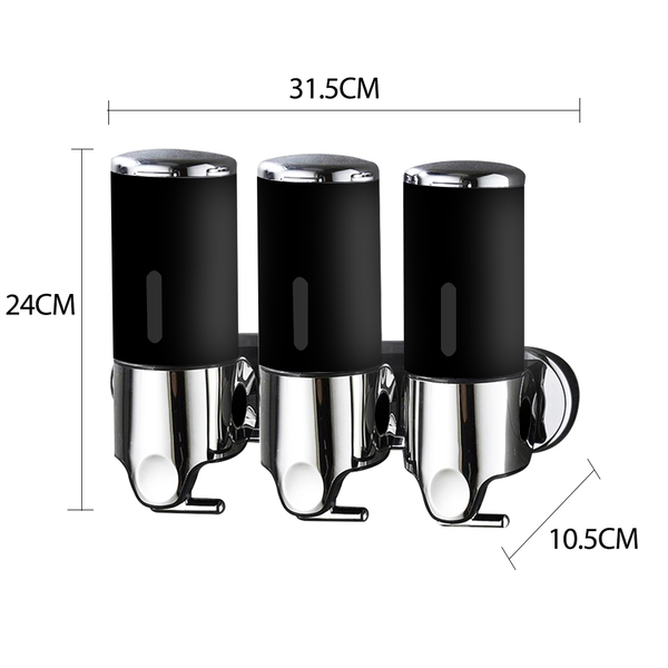 3 Bottles Bathroom Shower Soap Dispenser Black