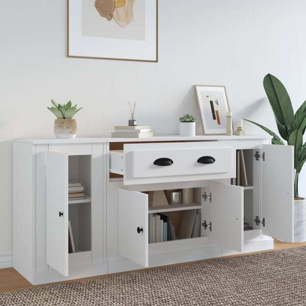 These classic sideboards, featuring a timeless look, are meant to be an excellent addition to your home. Durable material: The engineered wood is of exceptional quality with a smooth surface and features strength, stability and resistance to moisture.Ample storage space: The cabinet offers ample storage space for keeping your various daily essentials well organised and within easy reach.Displaying function: You can also place your favourite photos, decorations or flowers on top of the storage cabinet to enrich your life. Good to know:To make assembly as easy as possible, each product is delivered with a manual. Warning:To prevent it being overturned, this product must be used with the provided wall attachment device