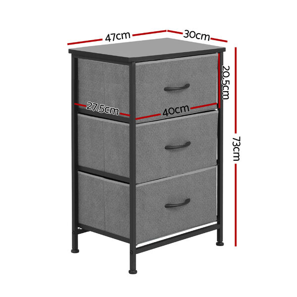 3-Drawer Chest of Drawers Grey Storage Dresser Tallboy for Bedroom