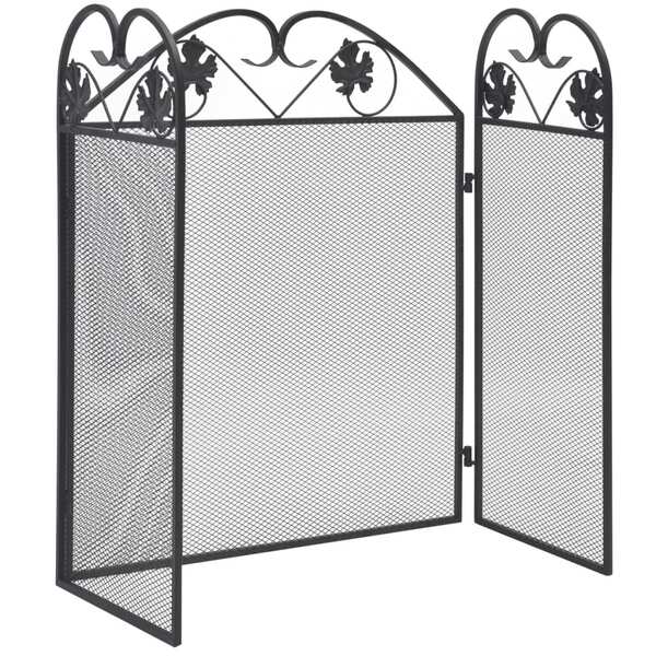 This 3-panel spark fireplace screen will add some classic flair to your fire with its elegant scrollwork decoration. Made of high-quality iron, the fireplace screen is reliable and durable. It has a fine mesh backing to contain embers and ash. At the height of 61 cm, our fireplace screen will keep children and pets at a safe distance. Thanks to its wide span, it will not only enclose the fireplace itself, but also any sharp corners and cables surrounding it. This 3-panel fireplace screen can be folded up when not in use.