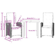 3 Piece Bistro Set with Cushions Grey Poly Rattan