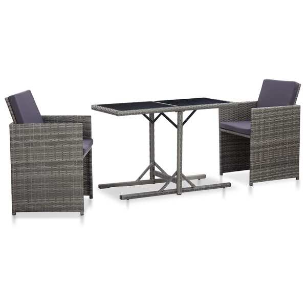 3 Piece Bistro Set with Cushions Poly Rattan Grey