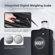 The built-in digital weighing scale, located in the handle and powered by a CR2032 battery, lets you check your bag’s weight instantly to avoid airline fees. A USB charging port is also included, allowing you to charge your devices on-the-go by connecting a power bank inside the suitcase. For security, each suitcase comes with a TSA-approved lock for stress-free international travel.