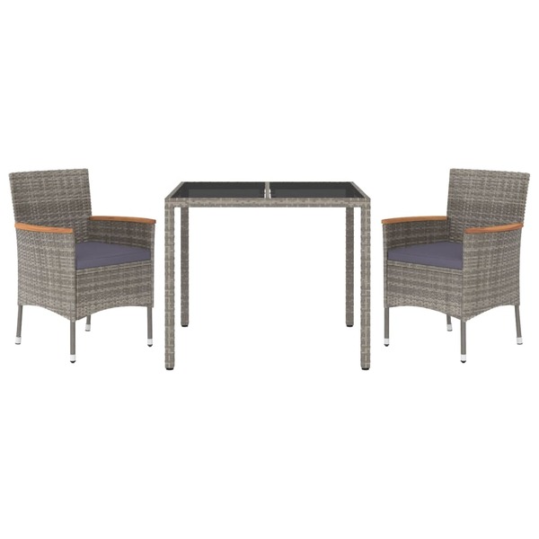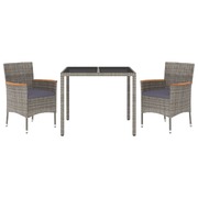 3 Piece Garden Dining Set with Cushions Grey Poly Rattan