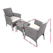 3Pc Outdoor Bistro Set Patio Furniture Wicker Setting Chairs Table Cushion Grey