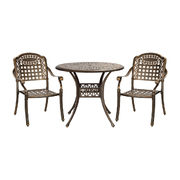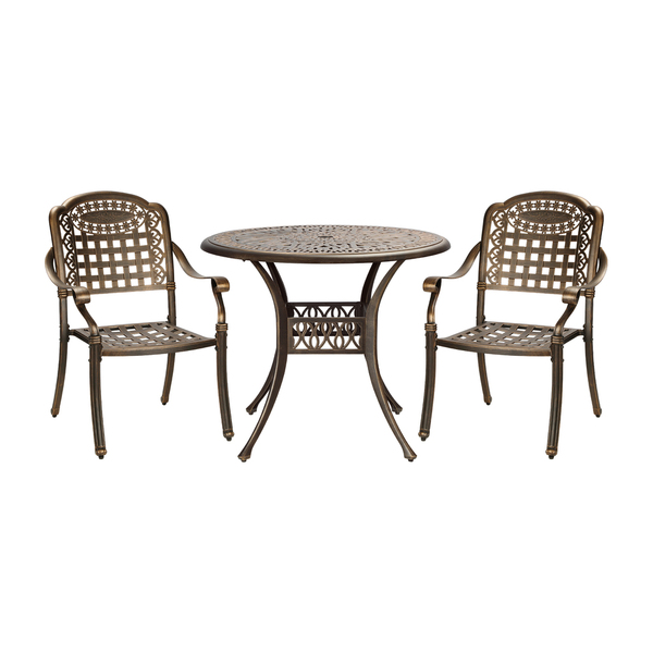 Made from powdered-coated cast aluminium, the bistro set replicates the construction materials of the era perfectly. The flawless smooth finishing and SGS-tested paintwork further add to the immaculate quality with vintage appeal. Naturally, the bistro set is designed to be weatherproof and resistant to corrosion with constant use outdoors. And let's not stop there. You can also use the set indoors to create a unique setting and a definite conversational piece.
