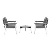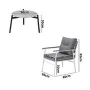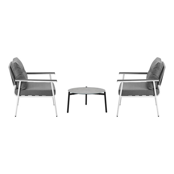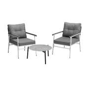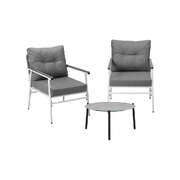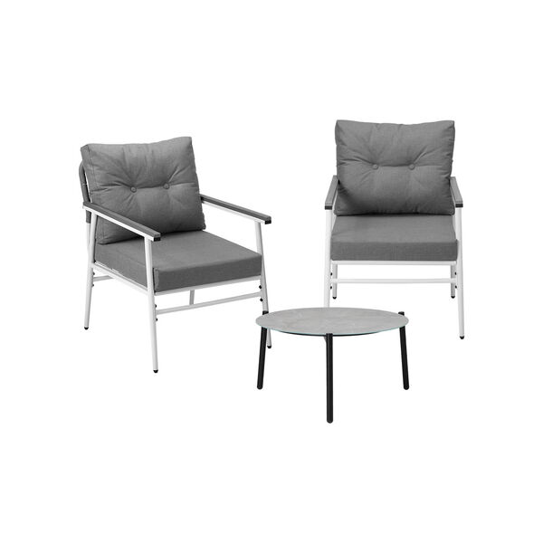 3 Piece Outdoor Patio Set 50cm Table Grey and White Armchair