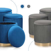Upholstered in velvet with a gentle pleated finish, they bring a soft, polished look to bedrooms, living areas or dressing spaces. The smaller ottomans nest neatly inside the large one for easy storage, and non-slip base pads help protect your floors.