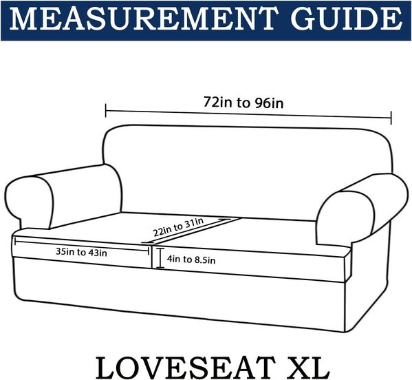 This soft and high stretch cover made of durable and gentle 85% polyester and 15% spandex fabric, soft rich and textured give your living room a fresh look while protecting your furniture from pet hair, spills, and more. Our slipcovers are designed and readymade to fit a variety of furniture. Crafted from a soft polyester with knitted jacquard fabric blend, each plush and bouncy slipcover is elasticized for a snug fit. 4 sofa cover sizes for your choice Single Sofa Slipcover(Small Size): Fitted sofa width from 32''48''. Loveseat Sofa Slipcover (Medium Size):Fitted sofa width from 58''72''. XL Loveseat Slipcover(Large Size):Fitted sofa width from 72''96''. Sofa Slipcover(XLarge Size):Fitted sofa width from 72''96''. Care Instruction Wrinkle for easy maintenance. Machine washing in cold, do not bleach, tumble dry low and no iron. Warm reminder that always wash before initial use, especially for dark color covers.