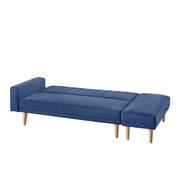 3 Seater Fabric Sofa Bed with Ottoman - Blue