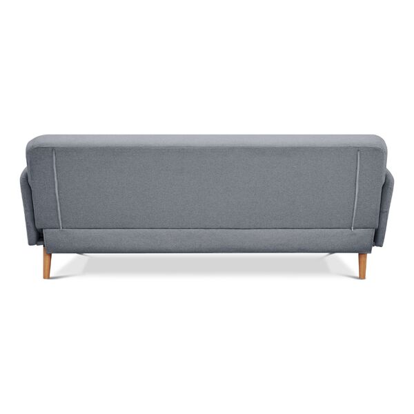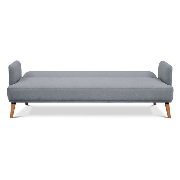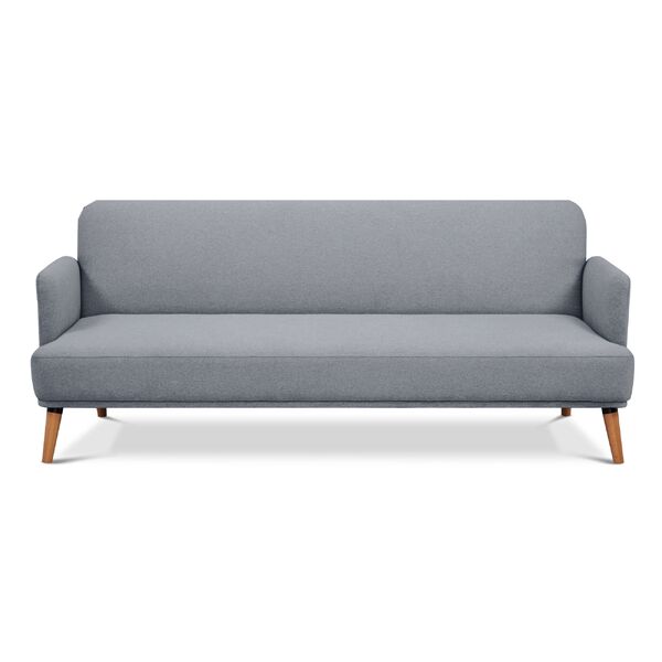 This comfy 3-seater sofa bed in light grey is a visual feast in itself. The Scandinavian-style furniture is upholstered in a plush upholstery made of high-performance 100% polyester. The upholstery has a smooth fit due to the intact tailoring on the frame. The solid pine wood and plywood frame make the sofa light and highly durable. The durable frame with seating support made of thick bonded foam, fabric, and high-tensile S springs ensures heavenly comfort when you relax on it. Tapered wooden legs in nature wood colour give the furniture a strong base. The sofa is easy to assemble, long-lasting, and comes with a 1-year warranty.
