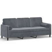 3-Seater Sofa with Throw Pillows Dark Grey Velvet