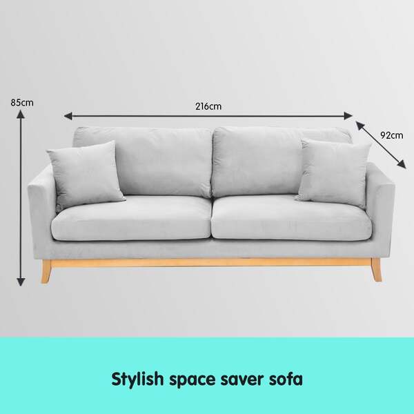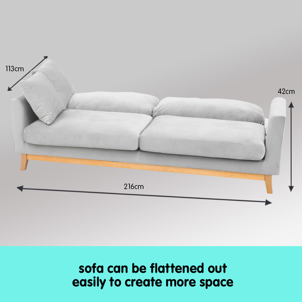 3 Seater Velvet Sofa Bed Couch Furniture Light Grey