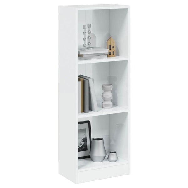 3-Tier Book Cabinet High Gloss White/Chipboard