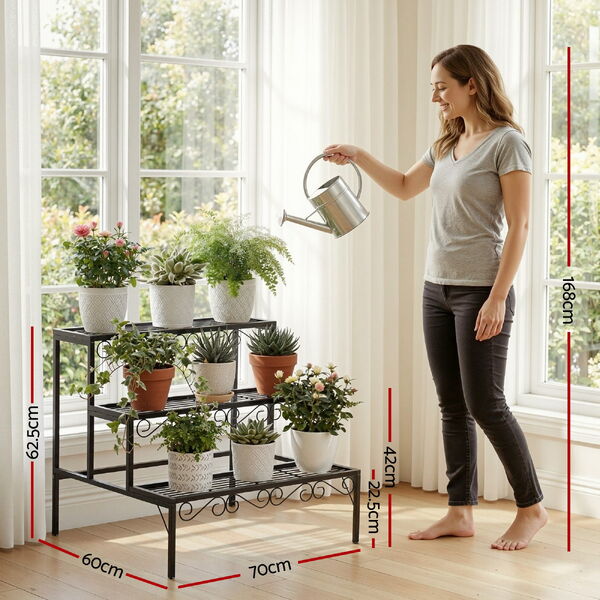 Showcase your plants in style with the 3-Tier Plant Stand. Constructed from a black powder-coated metal frame with a weather-tolerant finish, this stand is built to last and suitable for both indoor and outdoor use.