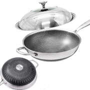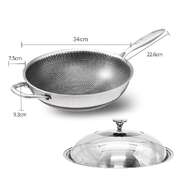Non-Stick Stir Fry Cooking Kitchen Wok Pan with Lid Honeycomb Double Sided