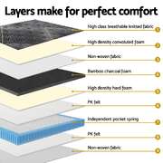 35cm Giselle Mattress King Bed Bamboo Charcoal Foam Pocket Spring Medium Firm Euro Top 6-Turn Coils Midnight Series