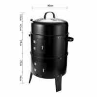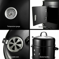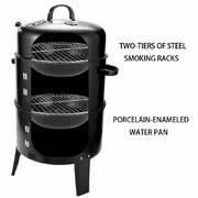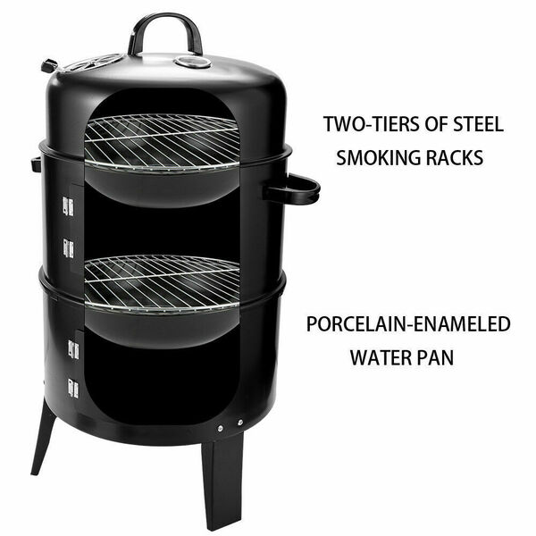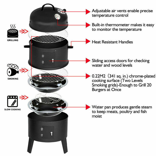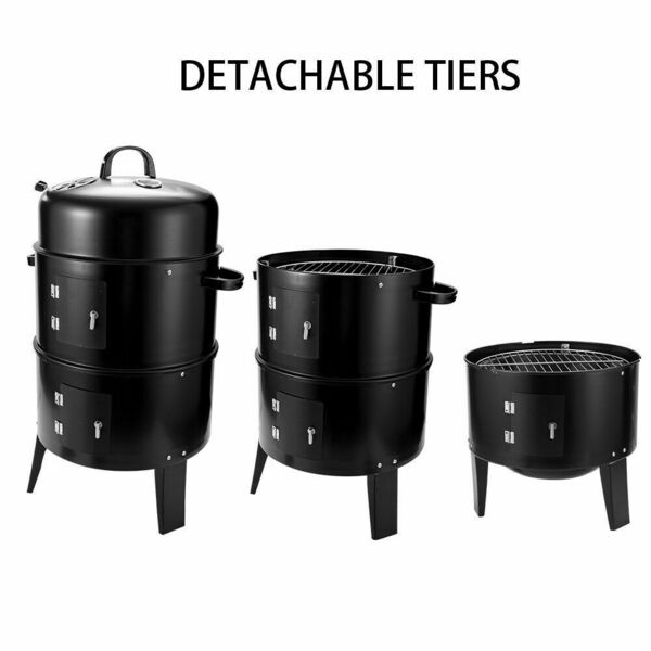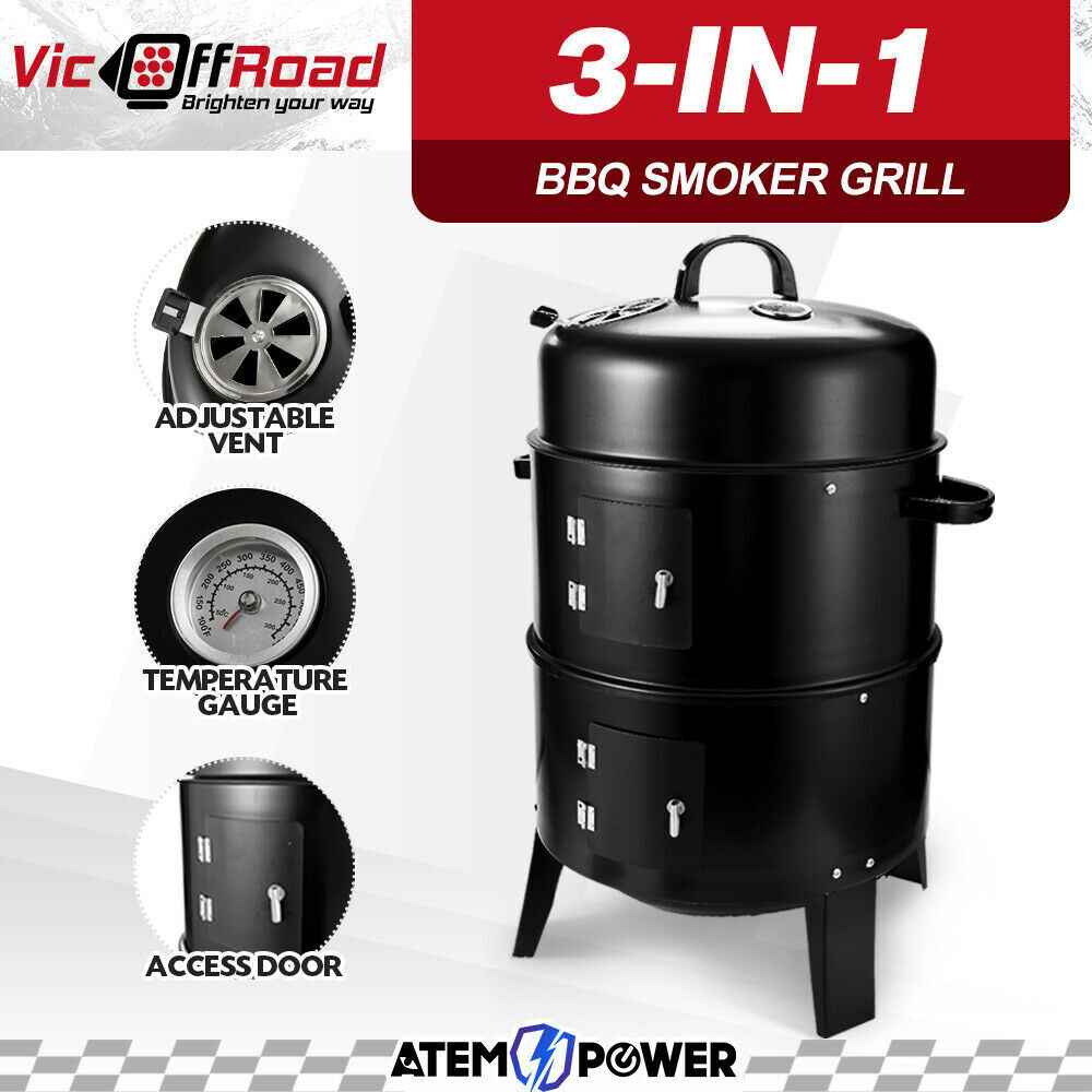 3In1 Portable Charcoal Vertical Smoker BBQ Grill Roaster Steel Steamer