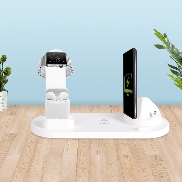 A real messy in charging place? Always fumbling for your cables? Our 3-In-1 Charging Dock with wireless provides a comfortable charging experience, suitable for Qi-enabled smartphones and iWatch, Airpods, iTouch and iPhone. It has a 360° rotatable charging base, a fast wireless charging, an airpods charger and an iWatch bracket. Featuring iPhone/Micro/Type-C interfaces correspond to different mobile phones. With automatic power-off technology, it effectively prevent overcharging, overcurrent and overvoltage protection, well protecting your device battery from overcharging damage. Just install the original apple cable into smart watch charging bracket, then start your unique and convenience charging just now!