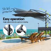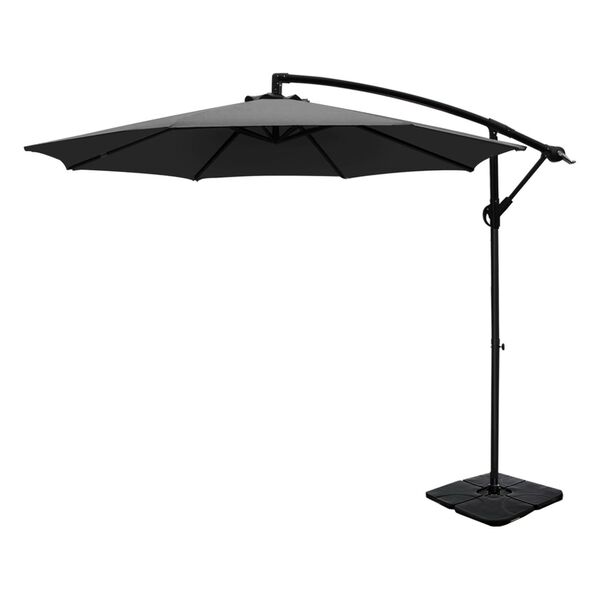 3M Umbrella W/Base Outdoor Cantilever Beach Garden Patio Parasol Charcoal