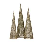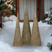 Add a shimmering finale to your festive space with the Gold Cone Christmas Trees, a striking three-pack of pre-lit decor for both indoors and outdoors.