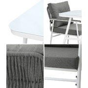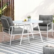 Living life to the fullest. Chilling out under the sun, moon and stars. Alfresco dining with friends, family or just with your precious me-time. Simply pursuing and enjoying life that is meant to be. And the Outdoor Dining Set is ready to be there at home with you. Stylish. Contemporary. Beautiful. For the dining table, a gorgeous tempered glass top. And for the dining chairs, equally attractive pieces that go well with the table. The set has all the attributes of chic outdoor furniture that resonate with your discerning lifestyle. Have your lattes, your favourite brews and savour delectable cuisines and other gastronomical delights. Eat, drink and be merry! But how does the dining set stand up to the harsh and sometimes fickle Australian weather? No worries mate as it is all weather-resistant, chairs and table, with strength and durability for robust use. Not least, this dining setup also looks fabulous with any indoor eclectic styling ideas that you may have. Convinced that this delightful outdoor package is for you? Click on the Buy option and soon you will be feasting to your (and many others too) heart is content at the Outdoor Dining Set day and night, night and day, in every season.